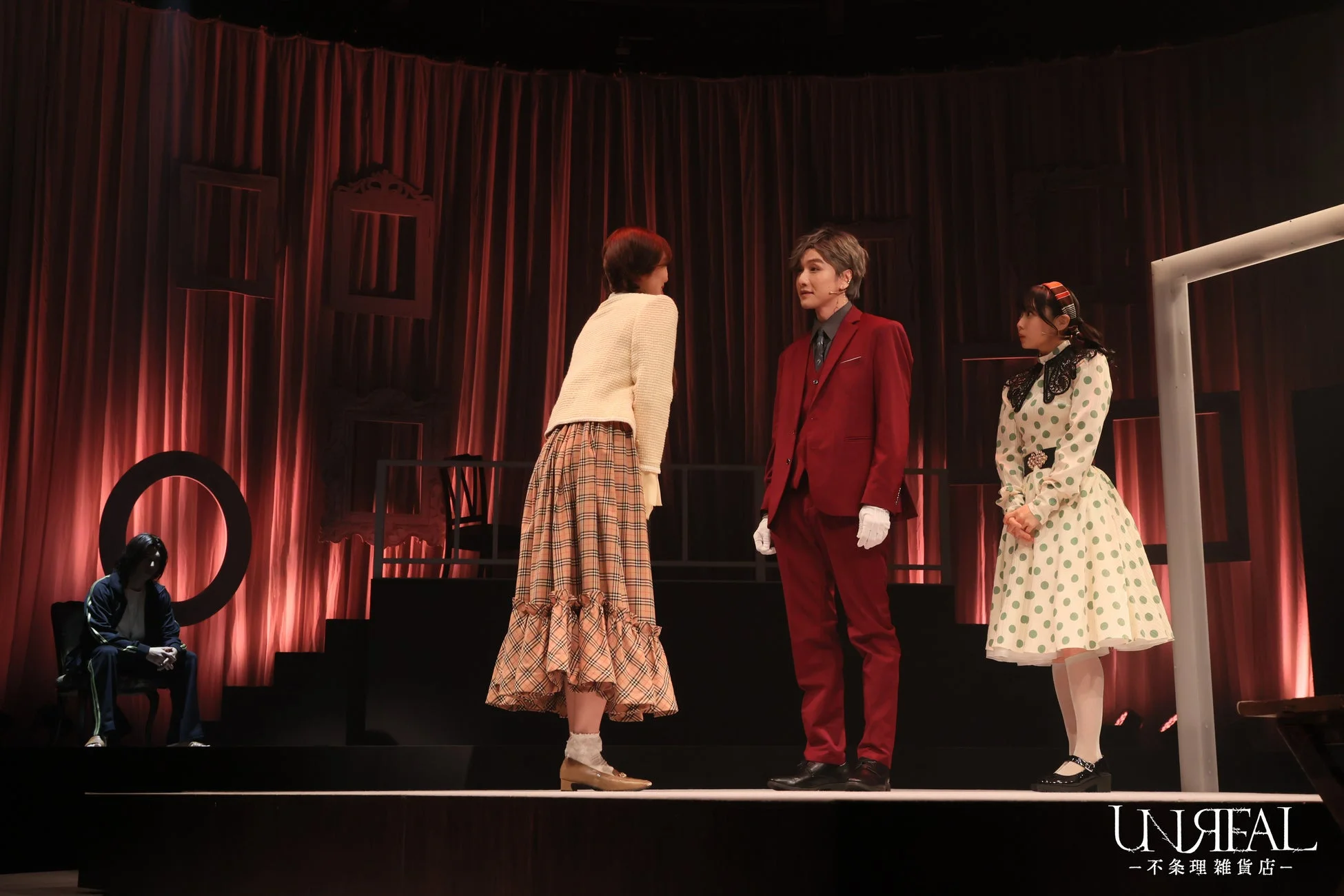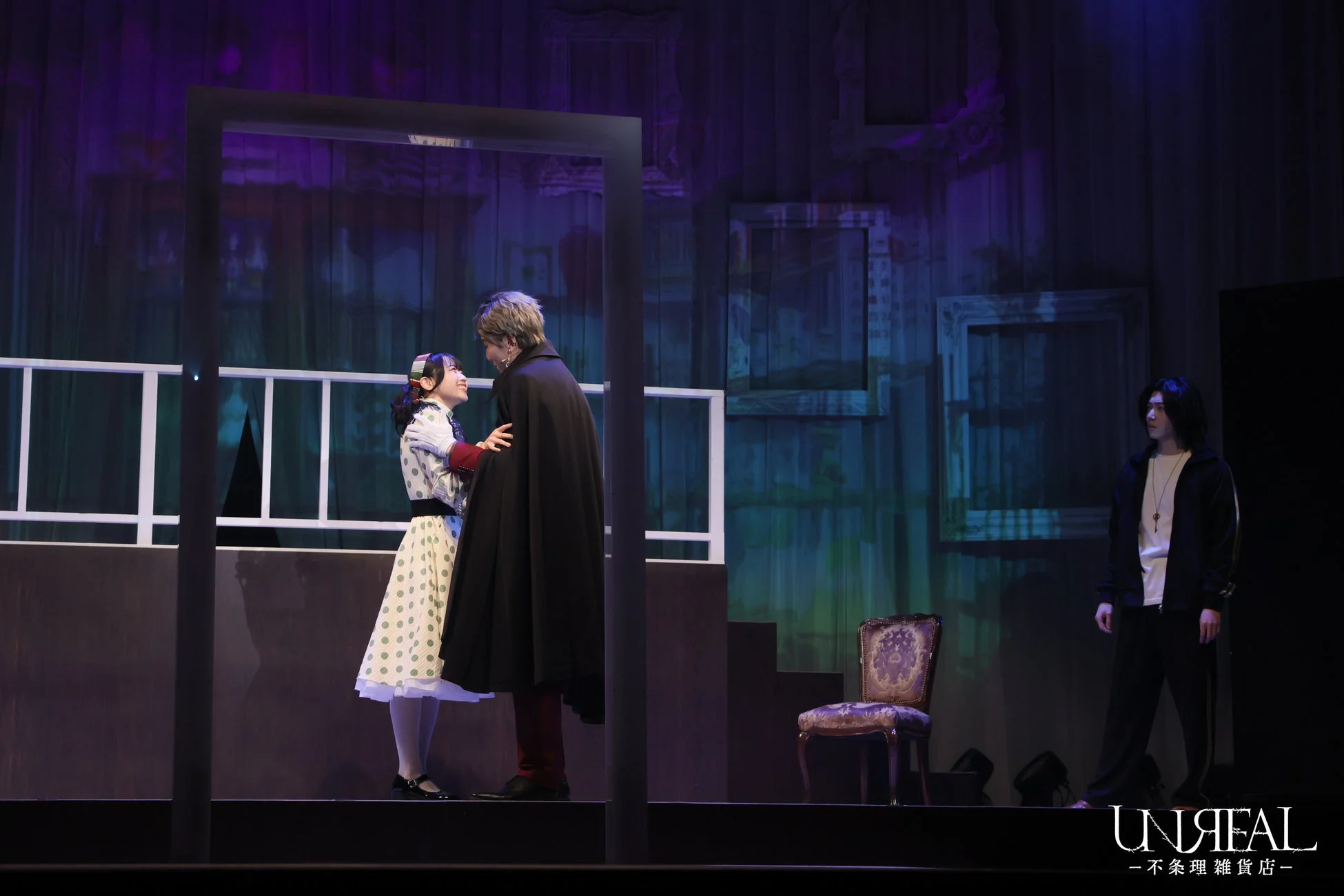 舞台「UNREAL-不条理雑貨店-」の開幕直前には、メディア向けの公開ゲネプロが行われました。その舞台上では、出演者たちが織りなす繊細な感情と迫力ある演技が、観客を『不条理雑貨店』の不思議な世界へと誘います。