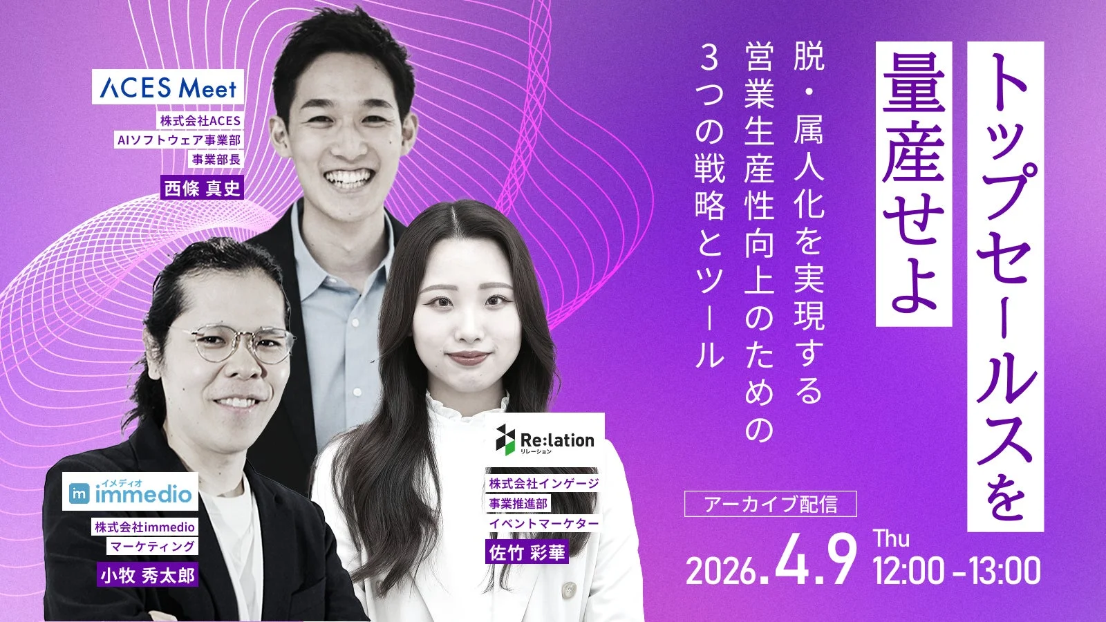 タイトル: 【アーカイブ配信】トップセールスを量産せよ!~脱・属人化を実現する営業生産性向上3つの戦略とツール~