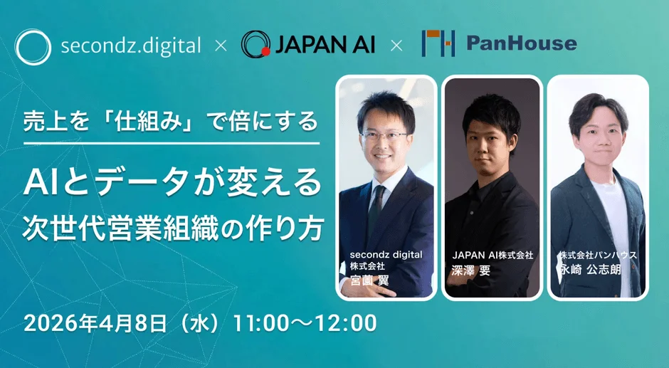 secondz digital株式会社は、2026年4月8日(水)に「売上を『仕組み』で倍にする AIとデータが変える次世…