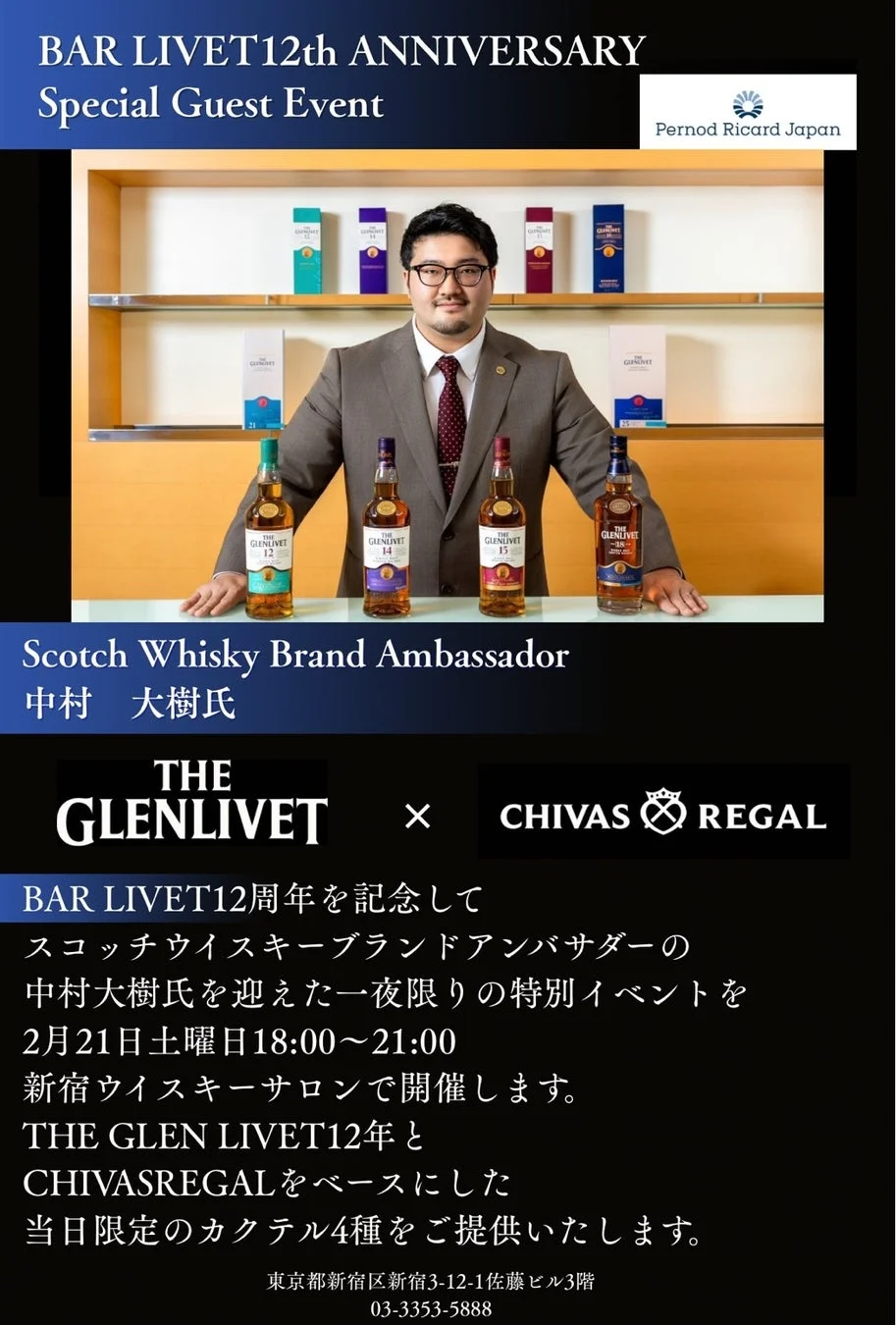 BAR LIVETの12周年を祝して、2026年2月21日(土)に新宿ウイスキーサロンにてスペシャルイベントが開催さ…